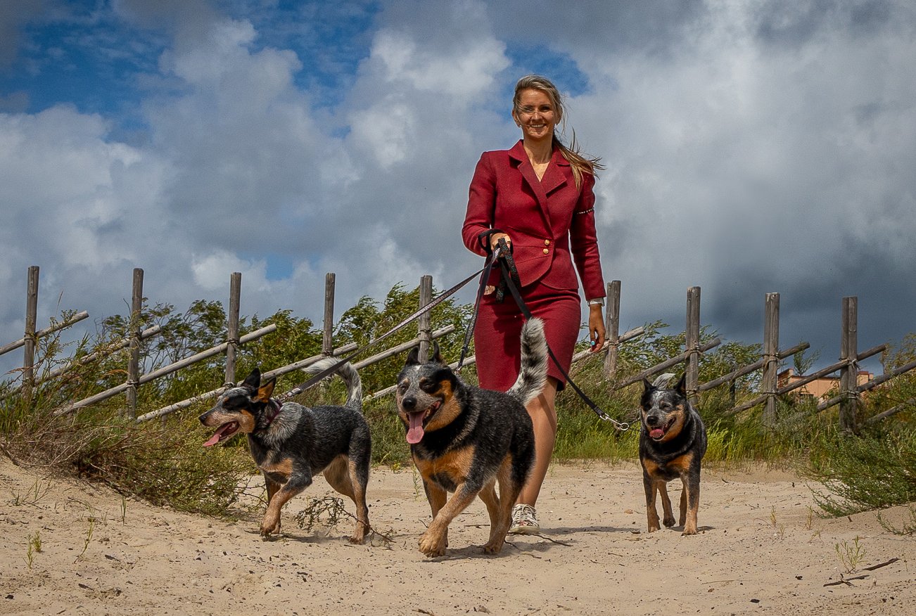 The Australian cattle dog, also known as the Blue Heeler and the Red Heeler, is an extremely intelligent, active and durable dog breed created by Australian settlers. The breed was created in Australia, where the main task was to control and move huge herds, and it is still used as a herding dog. Australian cattle dog is a compact, durable and powerful working dog with the ability and desire to do the task assigned to it. They are loyal and will protect their family, tend to be wary of strangers. In addition to herding work, these dogs are good at dog sports such as flying disc competitions, agility, canicross, rally and others.